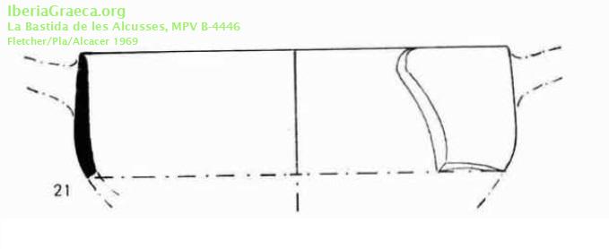 Observaciones : Además de estos ejemplares aparece, según FLETCHER/PLA/ALCACER 1969, p. 267: "Dos fragmentos de bordes, con arranques de las asas, de sendos Kylikes áticos de barniz negro, brillante en uno y opaco en el otro, y de pasta rojiza y grisácea, respectivamente. Forma 42. (No se dibujan.) Inventario B-4.443 y 4.453". Autor: Alejandra Macián (Universitat de València-EG) Supervisor: José Pérez Ballester (Universitat de València-EG) Fecha: 09-11-2018 |