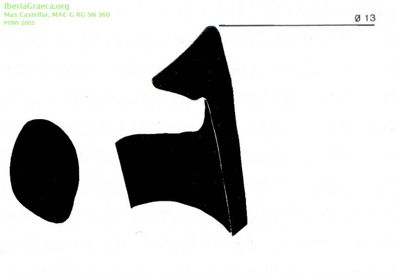 Procedencia: Mas Castellar - Pontós (Girona) Contexto: Zona 11. Fase C1. Fase reciente del establecimiento helenístico especializado Cronología: 225 aC. | 125 aC. IMÁGENES ASOCIADAS