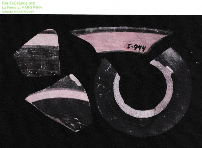 Observaciones : Dentro de las copas jonias halladas en la Fonteta se han diferenciado dos grupos. El primero de ellos, al que pertenecen estos fragmentos, presenta un tipo de pasta que entraría dentro de las características que tradicionalmente se han identificado con las producciones samias (representadas por un ejemplar del tipo B2 y otro del tipo A2). El borde de la copa B2 muestra un número de inventario antiguo, el F-944. Autor: Beatriz Domingo (CIG) Supervisor: Margarita Moreno (CIG) Fecha: 26-09-2020 |