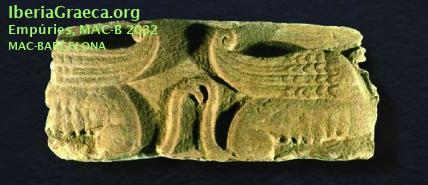 Origen : Emporion Categoria : Arquitectura Tipologia : Friso arquitectónico Material : Piedra arenisca Parte Conservada : Fragmento DECORACIÓN