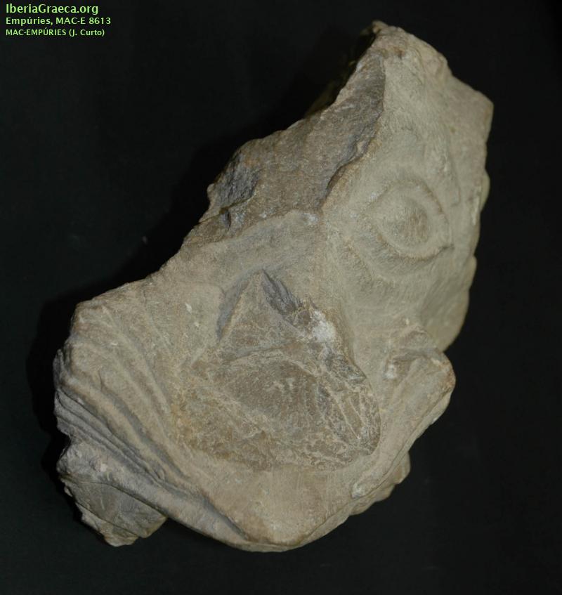 Origen : Emporion Categoria : Arquitectura Tipologia : Gárgola Material : Piedra caliza local Parte Conservada : Fragmento DECORACIÓN
