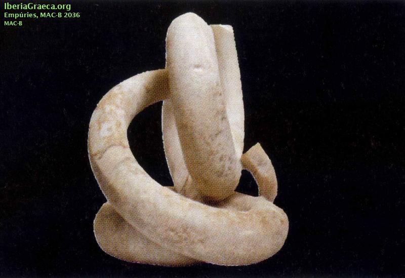 Descripcion : Fragmento de una figura exenta, la mayor parte esculpida en mármol de Paros junto con fragmentos de micrita y piedra calcárea local, resultado de algunas restauraciones. Representa la parte inferior de una serpiente de la que no se ha conservado su cabeza. Aparece torsionada y enroscada sobre si misma sin ningún tipo de base de sustentación. Almagro y Kukhan 1958 la restituyen como elemento perteneciente a la estatua del dios Asklepios, enroscada en su báculo. Esta interpretación será cuestionada por Ruiz de Arbulo y Vivó 2007, puesto que además de ser una figura aislada, no seria posible ubicarla en el plinto debido a su tamaño, aunque sí se le atribuye un carácter de divinidad guardiana acompañante. Observaciones : La serpiente marmórea fue hallada dispersa en diferentes fragmentos durante las excavaciones de 1909 en la zona del templo M de la Neápolis. Forma parte del conjunto de elementos escultóricos localizados en el sector: la parte inferior y brazos de la escultura de Asklepios (CIG 11213), el ara (CIG 11503), la cabeza y las piernas de Apolo Liceo (CIG 11362), la placa con la Esfinge (CIG 11504), la cornucopia (CIG 11507) y la garra animal de mármol (CIG 11506). Autor: Xavier Font (CIG) Supervisor: Xavier Aquilué (CIG) Fecha: 10-11-2020 |
