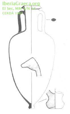Origen : Samos Forma : Ánfora de transporte Tipo : Tipo N de El Sec Parte Conservada : Perfil completo DECORACIÓN Observaciones : Según Cerdà 1987b, se documentan 150 ejemplares de este tipo N de Samos, de los cuales tres ejemplares enteros se han subdividido en los tipos El Sec N-1, El Sec N-2 y El Sec N-3. Este ejemplar pertenecería al tipo El Sec N-1. Autor: Sara Martínez (CIG) Supervisor: Xavier Aquilué (CIG) Fecha: 04-02-2021 |