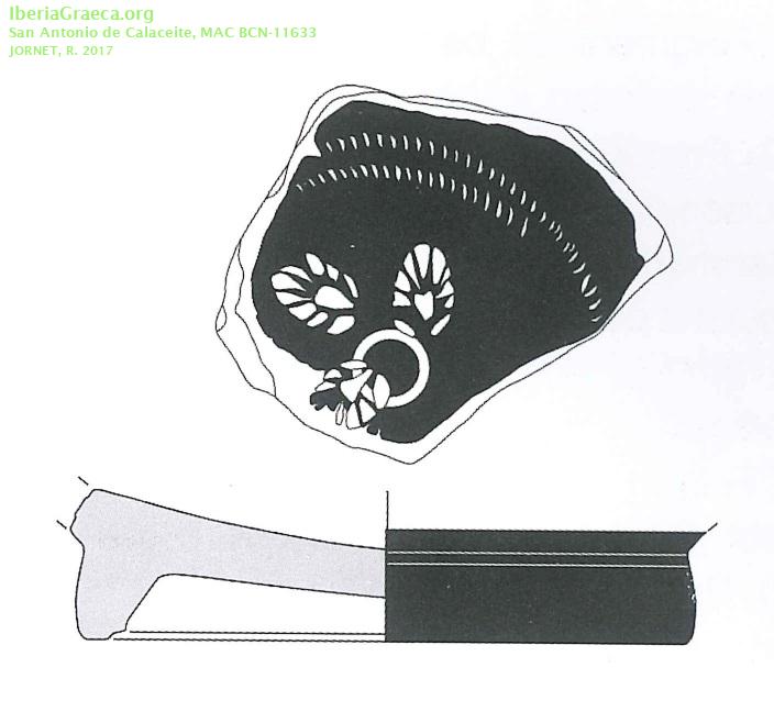 Origen : Ática Técnica : C. de barniz negro Forma : Cuenco Tipo : Lamb. 24 Parte Conservada : Base DECORACIÓN