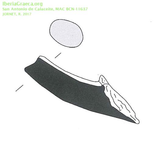 Origen : Ática Técnica : C. de barniz negro Forma : Copa Tipo : kylix Parte Conservada : Asa DECORACIÓN
