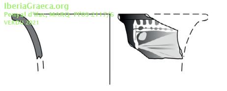 Origen : Ática Técnica : C. de barniz negro Estilo : Saint Valentin Forma : Cántaros Tipo : Tipo Howard-Johnson VI Parte Conservada : Borde y pared DECORACIÓN