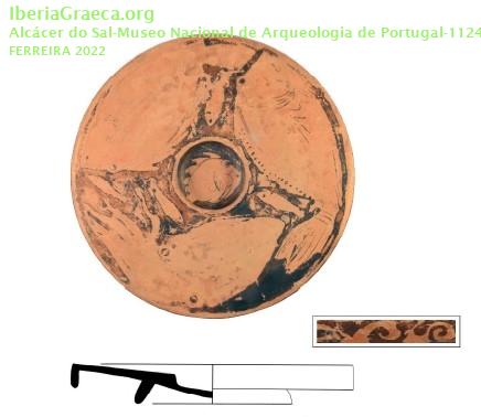 Origen : Ática Técnica : C. de figuras rojas Forma : Plato de pescado Parte Conservada : Perfil completo Autor/Taller : ALCÁCER DO SAL P DECORACIÓN