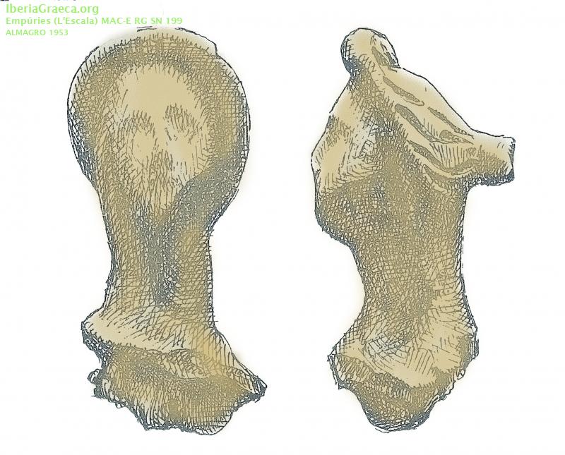 Descripcion : Cabeza de terracota perteneciente a una figura femenina perdida. Se observa el cabello recogido en la parte posterior con gorro similar al cónico. Mide 75 mm de altura. Observaciones : Hallada en la tumba de incineración número 86 de Les Corts como ajuar funerario junto con cinco ungüentarios de los cuales solo se conserva uno. Su procedencia atribuida a talleres magno-griegos no es segura. Autor: Xavier Font (CIG) Supervisor: Xavier Aquilué (CIG) Fecha: 14-12-2023 |