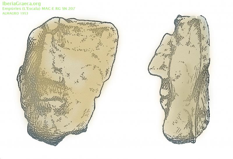 Descripcion : Fragmento de una figura de terracota que solo conserva parte del rostro. Muestra deterioro sin que permita definir más detalles. Mide 42 mm de altura. Observaciones : Terracota depositada como ajuar funerario en la incineración número 123 de la necrópolis de Les Corts. Su procedencia atribuida a talleres magno-griegos no es segura. Autor: Xavier Font (CIG) Supervisor: Xavier Aquilué (CIG) Fecha: 15-12-2023 |