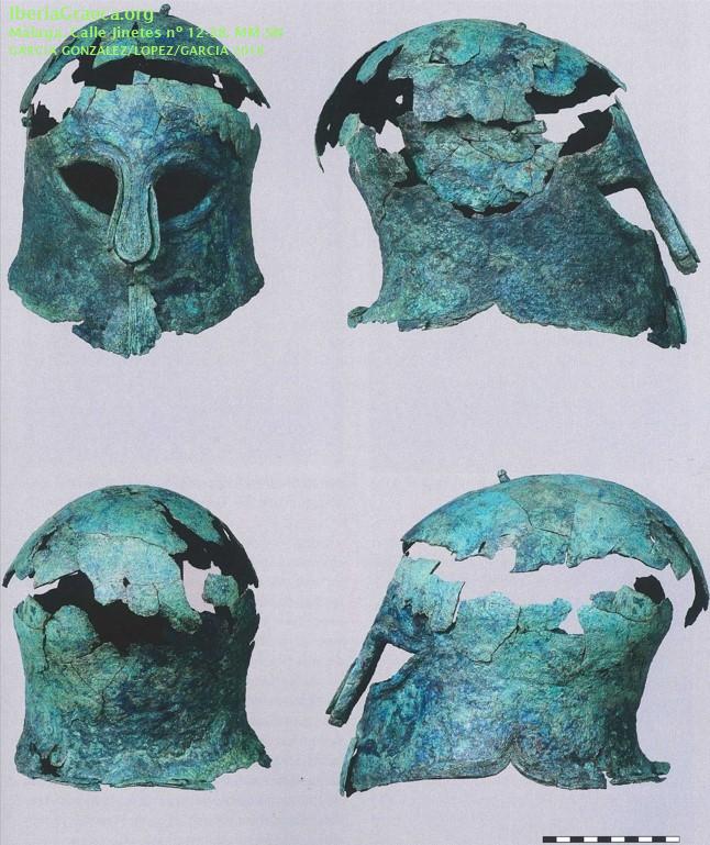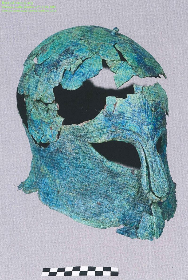 BIBLIOGRAFÍA Origen : Italia meridional Categoria : Armamento Tipologia : Casco de tipo corintio Material : Bronce Parte Conservada : Perfil completo DECORACIÓN