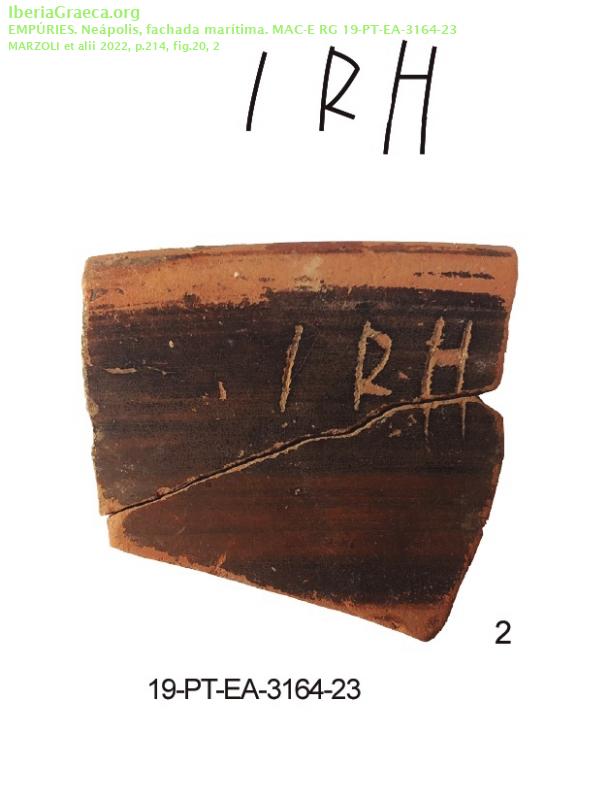 Observaciones : La inscripción usa la fórmula IPH -estoy consagrada- de carácter votivo, según observan Domínguez Monedero (Universidad Autónoma de Madrid) y M. Oller Guzmán (Universitat Autònoma de Barcelona). Idéntica fórmula empleada en la copa CIG 12666 también procedente de la Neápolis, fachada marítima, sector Moll Grec. Autor: Xavier Font (CIG) Supervisor: Xavier Aquilué (CIG) Fecha: 27-02-2024 |