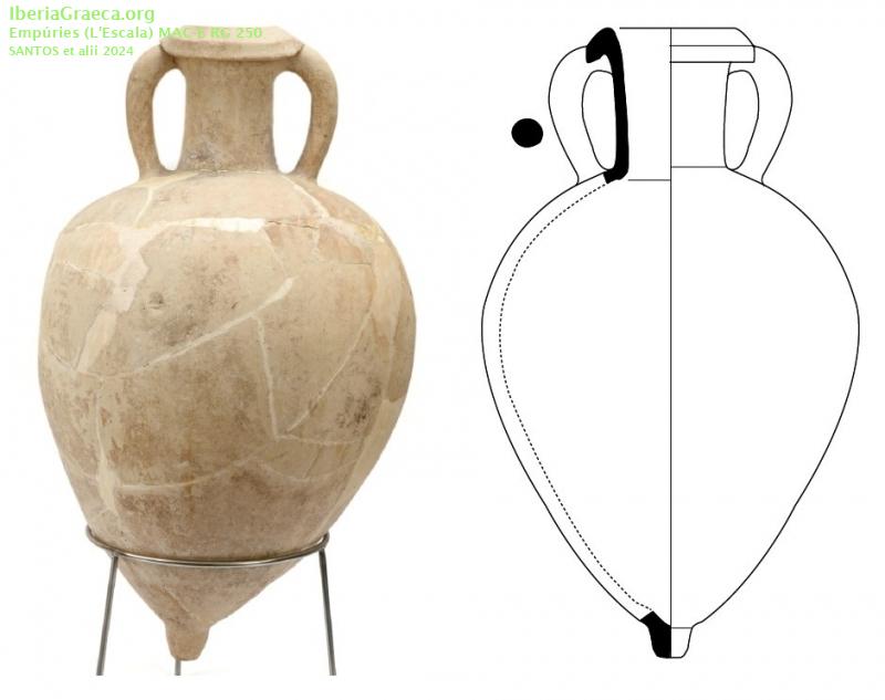 Origen : Corinto Forma : Ánfora de transporte Tipo : Tipo A de Koehler Parte Conservada : Perfil completo DECORACIÓN Observaciones : Ánfora de Corinto, de pasta depurada, de cuerpo de forma ovoide, con cuello cilíndrico, pivote corto y troncocónico y un perfil de borde con labio colgante de perfil casi triangular, que corresponde al tipo A (KOEHLER 1979). Autor: Conxita Ferrer (CIG) Supervisor: Xavier Aquilué (CIG) Fecha: 22-03-2025 |