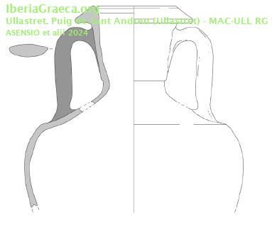 Origen : Magna Grecia / Sicilia Forma : Ánfora de transporte Tipo : Tipo B de Will Parte Conservada : Parte superior DECORACIÓN Observaciones : Mitad superior de un ánfora greco-itálica del tipo B de Will (WILL 1982). Autor: Conxita Ferrer (CIG) Supervisor: Xavier Aquilué (CIG) Fecha: 23-03-2025 |