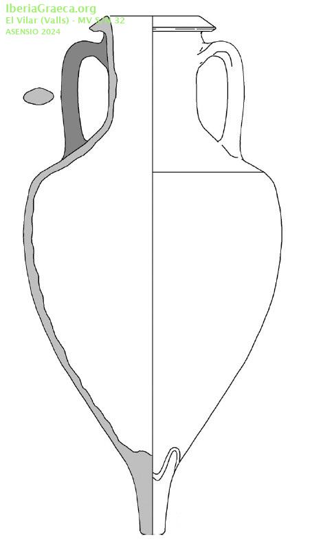 Origen : Magna Grecia / Sicilia Forma : Ánfora de transporte Tipo : Tipo C de Will Parte Conservada : Perfil completo DECORACIÓN Observaciones : Ejemplar completo de ánfora greco-itálica del tipo C de la clasificación de Will (1982). Autor: Conxita Ferrer (CIG) Supervisor: Xavier Aquilué (CIG) Fecha: 30-03-2025 |