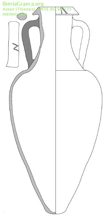 Origen : Magna Grecia / Sicilia Forma : Ánfora de transporte Tipo : Tipo C/D de Will Parte Conservada : Perfil completo DECORACIÓN Observaciones : Ejemplar entero de ánfora greco-itálica del tipo Will C/D (1982) que presenta un fondo cóncavo sin proyección de ningún tipo. Autor: Conxita Ferrer (CIG) Supervisor: Xavier Aquilué (CIG) Fecha: 30-03-2025 |