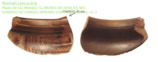 Procedencia: Huelva. Vacies de Méndez Nuñez/Plaza de las Monjas - Huelva (Huelva) Contexto: Indeterminado Cronología: 800 aC. | 760 aC. IMÁGENES ASOCIADAS