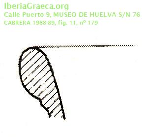 Procedencia: Huelva. Calle Puerto, nº 9 - Huelva (Huelva) Contexto: Indeterminado Cronología: 570 aC. | 550 aC. IMÁGENES ASOCIADAS
