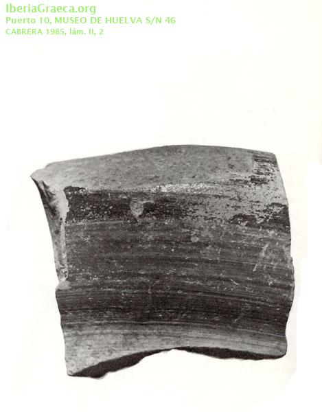 Procedencia: Huelva. Calle Puerto, nº 10 - Huelva (Huelva) Contexto: Indeterminado Cronología: 600 aC. | 550 aC. IMÁGENES ASOCIADAS
