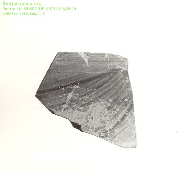 Procedencia: Huelva. Calle Puerto, nº 10 - Huelva (Huelva) Contexto: Indeterminado Cronología: 600 aC. | 550 aC. IMÁGENES ASOCIADAS