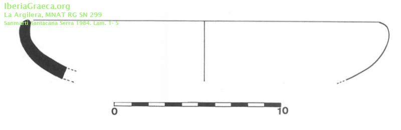 Observaciones : Cronología del estrato: 130-90 a.C. Cuatro fragmentos. Pasta color beis. Barniz extraordinaria calidad, negro intenso brillante. Diámetro: 210mm. Pendiente el número de inventario del MNAT Autor: Faustino Pérez Moracho (ICAC) Supervisor: M. T. Miró (Generalitat de Catalunya) Fecha: 02-11-2011 |