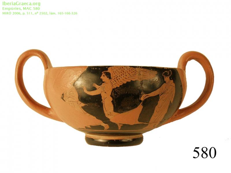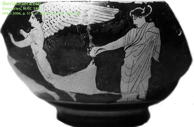 | Tipo Decoración : Pintada, Barnizada Escena : Persecución Personajes : Eros, Figura femenina, Figura masculina Elementos Secundarios : Quitón, Himation