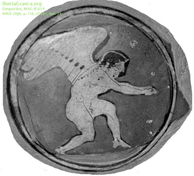 | Tipo Decoración : Pintada, Barnizada Escena : Mitológica Personajes : Eros Elementos Secundarios : Cabello Motivos Ornamentales : Orla de línea