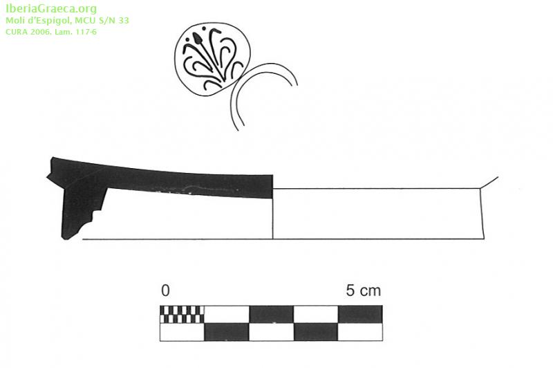 Origen : Rhode Técnica : C. de barniz negro Forma : Indeterminada Parte Conservada : Base DECORACIÓN