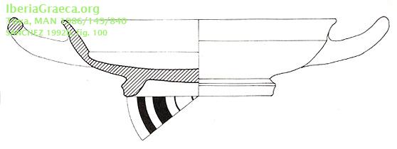 Origen : Ática Técnica : C. de barniz negro Forma : Copa Cástulo Tipo : labio cóncavo y moldura interna. Parte Conservada : Perfil completo DECORACIÓN Observaciones : Exterior e interior totalmente barnizados. Colección Román. Autor: Beatriz Domingo (MAN) Supervisor: Paloma Cabrera (CIG) Fecha: 09-12-2009 |