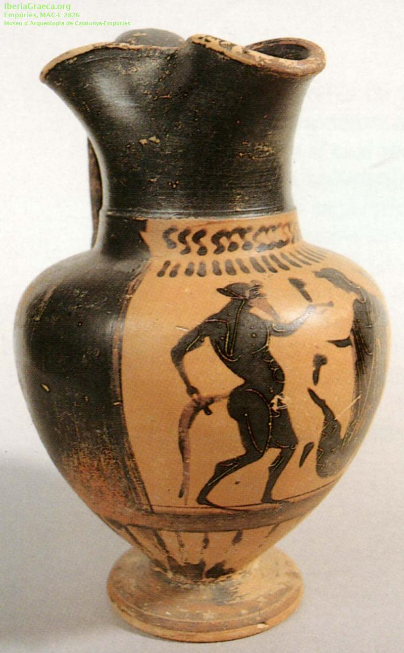 Uso secundario : Ajuar funerario Observaciones : Borde y extremo inferior del asa reconstruidos. Número antiguo de inventario 1487. En Cabrera/Sanchez 2000, la ficha es la número 60 pero la fotografía corresponde a la ficha número 61. El ajuar de esta tumba estaba formado por 3 escifos (CIG 3910, 3924 y 4901), 4 oinochoes (CIG 3920, 3921, 3922 y 3923), 2 ánforas (CIG 3918 y 3919), 1 copa (CIG 3917) de cerámica griega, 1 paloma de terracota (CIG 11430), 1 anillo de oro (CIG 11448) y 1 alabastron de pasta de vidrio. Autor: Sara Martínez (CIG) Supervisor: Xavier Aquilué (CIG) Fecha: 27-06-2013 |