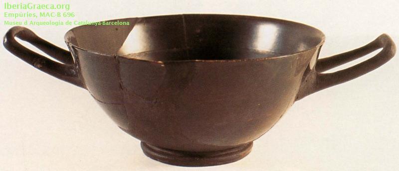 Origen : Ática Técnica : C. de barniz negro Forma : Copa escifo Tipo : Light Wall Parte Conservada : Perfil completo DECORACIÓN