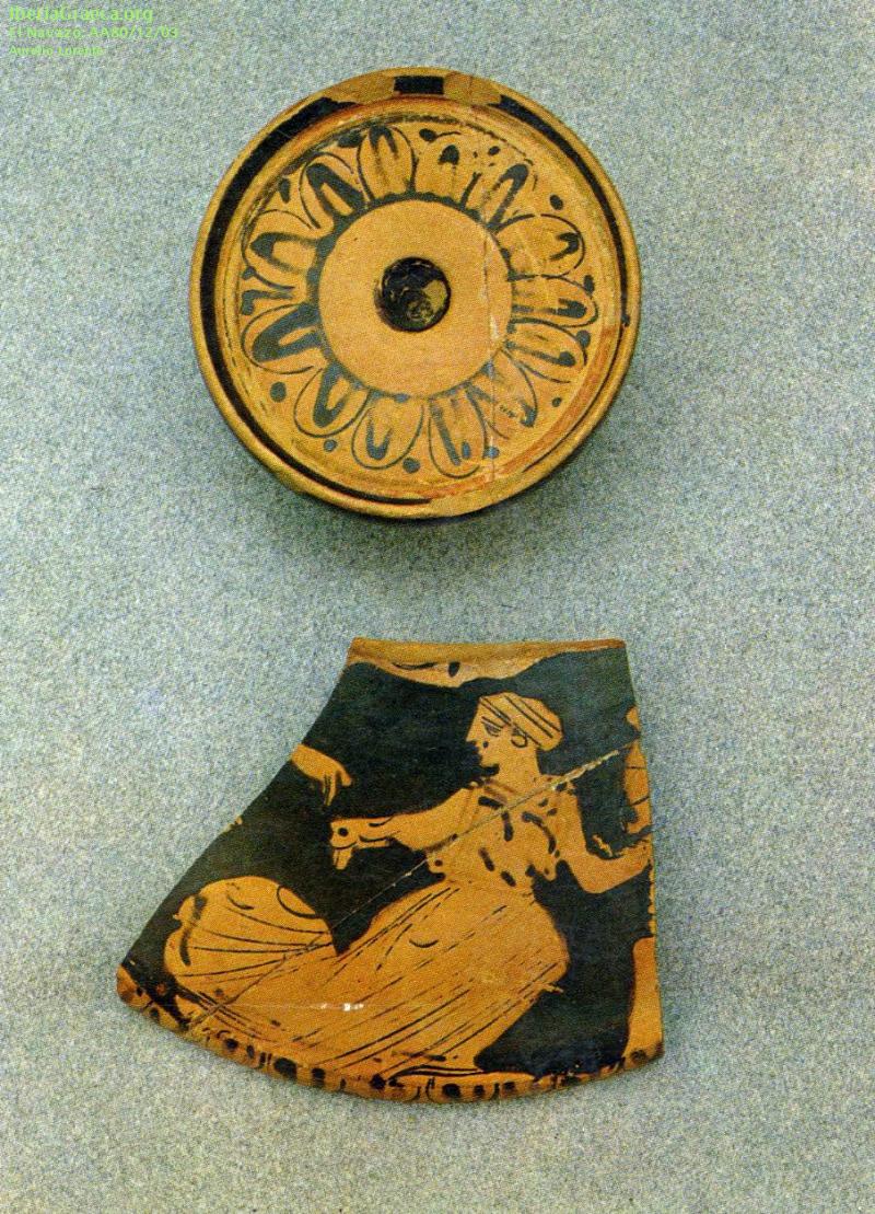 Origen : Ática Técnica : C. de figuras rojas Forma : Tapadera de lecanis Parte Conservada : Parte superior DECORACIÓN