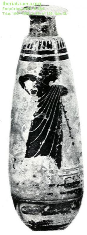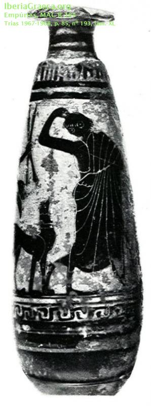 Origen : ÁticaTécnica : C. de figuras negrasForma : AlabastronParte Conservada : Perfil completoAutor/Taller : EMPORION P groupDECORACIÓN