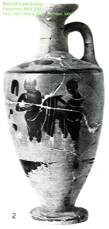 Uso secundario : Ajuar funerario Observaciones : Reconstruido. Técnica de silueta en los hombros, según TRIAS 1967-1968. ESTA PIEZA NO PROCEDE DE EMPÚRIES, SEGÚN D. MOLAS (2008, pp. 184-185, nº 2.5.). Autor: Pol Carreras (CIG) Supervisor: Xavier Aquilué (CIG) Fecha: 17-12-2013 |
