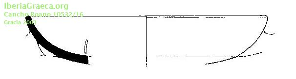 Origen : Ática Técnica : C. de barniz negro Forma : Copa Tipo : Stemless large plain rim Parte Conservada : Borde DECORACIÓN