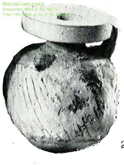 Uso secundario : Ajuar funerario Observaciones : Boca restaurada. Ha perdido el vidriado. Según TRIAS 1967-68, quizás se trate de una imitación local de un aríbalo de Naucratis. Junto a esta pieza apareció un aribalo de pasta de vidrio. Autor: Pol Carreras (CIG) Supervisor: Xavier Aquilué (CIG) Fecha: 21-02-2014 |