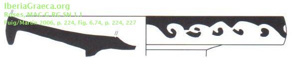 Observaciones : Restaurada y reconstruida. Los peces que aparecen podrían ser lenguados. Según García Martín 2000b se trata de una producción de la Magna Grecia. Autor: Antonia Rallatou (Universidad de Atenas) Supervisor: Xavier Aquilué (CIG) Fecha: 27-02-2014 |