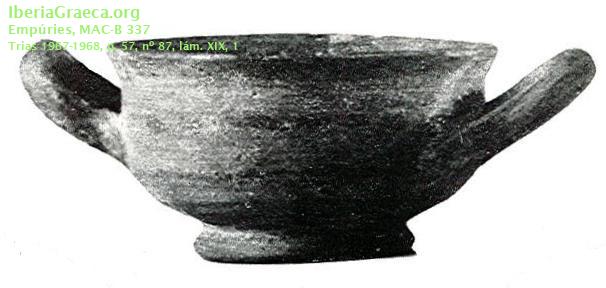 Origen : Griega indeterminada Técnica : C. de barniz negro Forma : Copa escifo Parte Conservada : Perfil completo DECORACIÓN