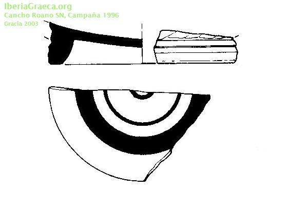 Origen : Ática Técnica : C. de barniz negro Forma : Copa Cástulo Parte Conservada : Base DECORACIÓN