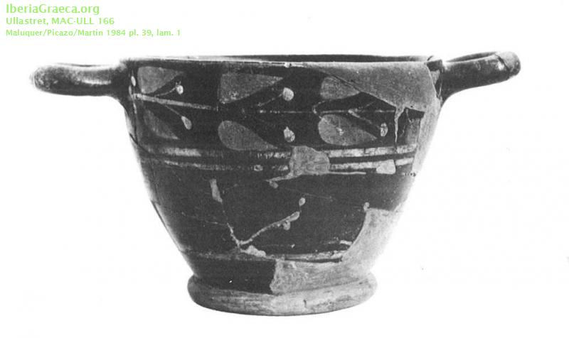 Observaciones : Pieza reconstruida y restaurada. Según la clasificación de PICAZO/ROUILLARD 1976, la pieza pertenece al grupo de escifos I a, los cuales son decorados con una guirnalda de hojas de mirto o de laurel, justo al borde. Autor: Eleni Ananiadou (Universidad de Tesalónica) Supervisor: Xavier Aquilué (CIG) Fecha: 12-11-2014 |