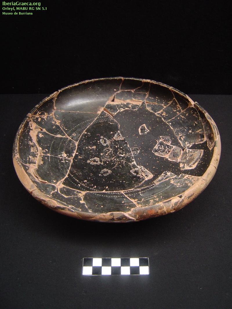 Uso secundario : Ajuar funerario Observaciones : Pie destacado con uña. Similar al núm. 835 de Sparkes y Talcott. Junto a esta copa, una crátera y otra copa ática apareció en esta sepultura 5 ponderales, 1 plato de balanza de bronce, restos de una falcata y de una fibula de hierro y 3 inscripciones ibéricas sobre plomo. Autor: Andrea Zamarro (Museo Arqueológico de Burriana) Supervisor: José Manuel Melchor (Museo Arqueológico de Burriana) Fecha: 19-05-2015 |