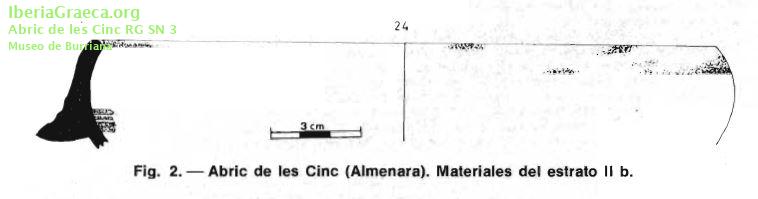 Procedencia: Abric de les Cinc - Almenara (Castelló) Contexto: Estrato II b Cronología: 550 aC. | 500 aC. IMÁGENES ASOCIADAS