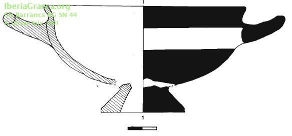 Observaciones : J. P. Morel y J. J. Jully se han planteado la posibilidad de una datación mas moderna, la cual estaría entre el 530 y el 520. Autor: Andrea Zamarro (Museo Arqueológico de Burriana) Supervisor: José Manuel Melchor (Museo Arqueológico de Burriana) Fecha: 02-07-2015 |