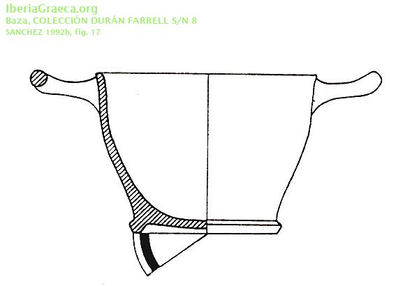 Origen : Ática Técnica : C. de barniz negro Forma : Escifo Parte Conservada : Perfil completo DECORACIÓN Uso secundario : Ajuar funerario Autor: Beatriz Domingo (MAN) Supervisor: Paloma Cabrera (CIG) Fecha: 26-01-2010 |