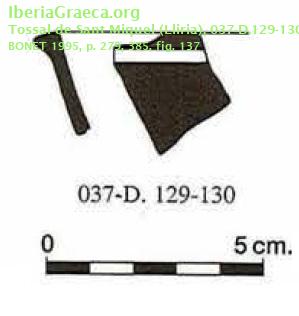 Procedencia: Tossal de Sant Miquel - Lliria (València) Contexto: Departamentos 129-130 Cronología: 350 aC. | 325 aC. IMÁGENES ASOCIADAS