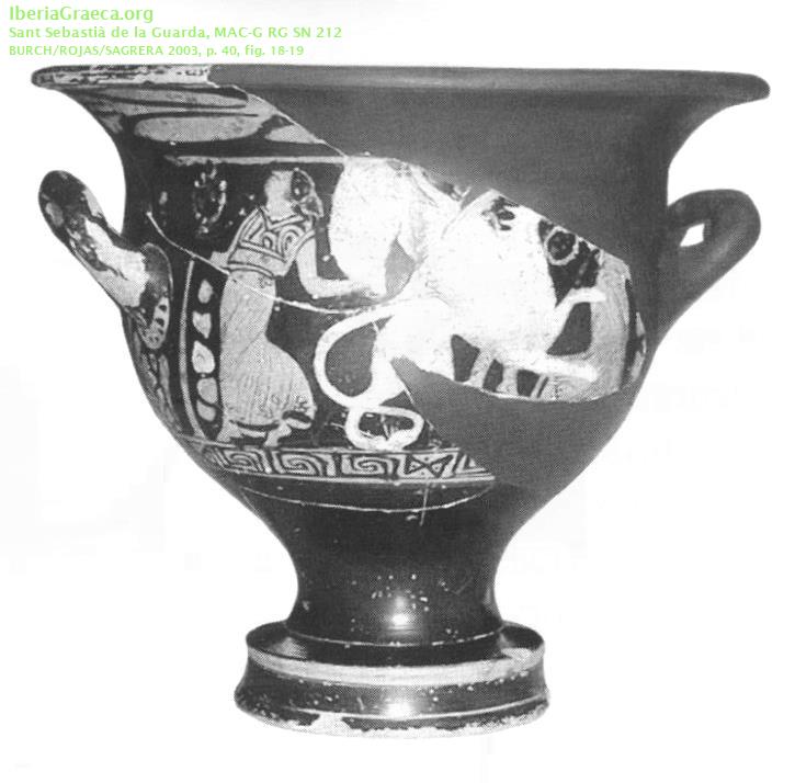 Origen : Ática Técnica : C. de figuras rojas Forma : Cratera de campana Parte Conservada : Perfil completo Autor/Taller : BLACK-THYRSUS P DECORACIÓN