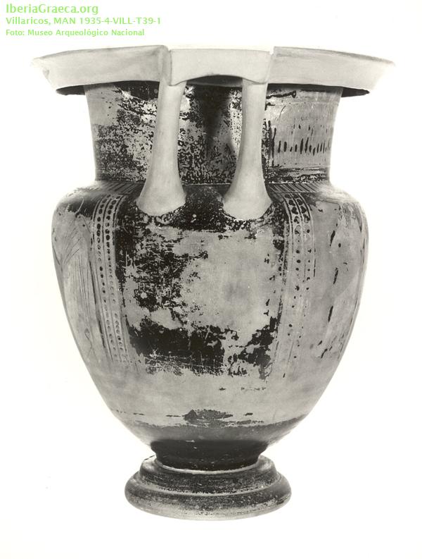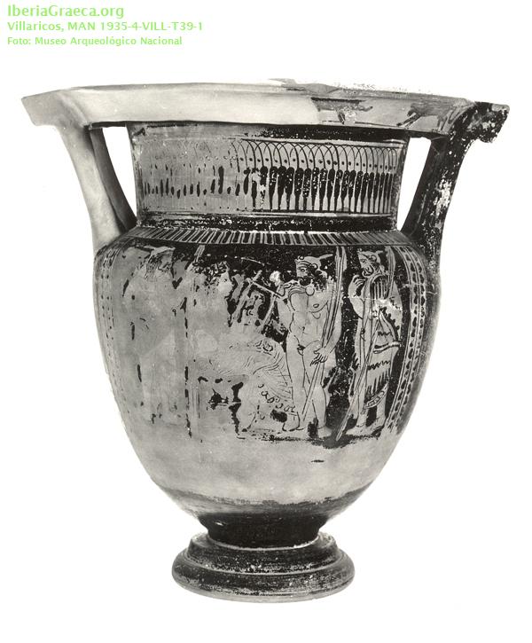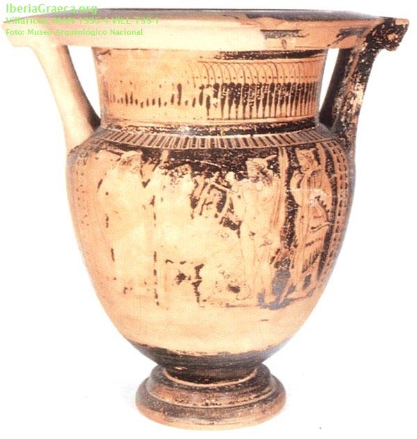 Origen : ÁticaTécnica : C. de figuras rojasForma : Cratera de columnasParte Conservada : Perfil completoDECORACIÓN