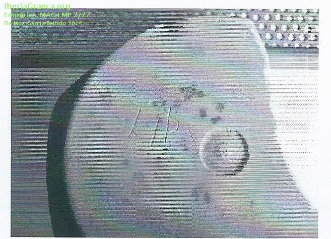 Observaciones : Datos del hallazgo desconocidos. Según DE HOZ GARCÍA BELLIDO 2014, inscripción de abreviatura del nombre de propietario o mercader de la pieza. las dos letras estan ligadas. Autor: Pol Carreras (CIG) Supervisor: Xavier Aquilué (CIG) Fecha: 28-12-2015 |