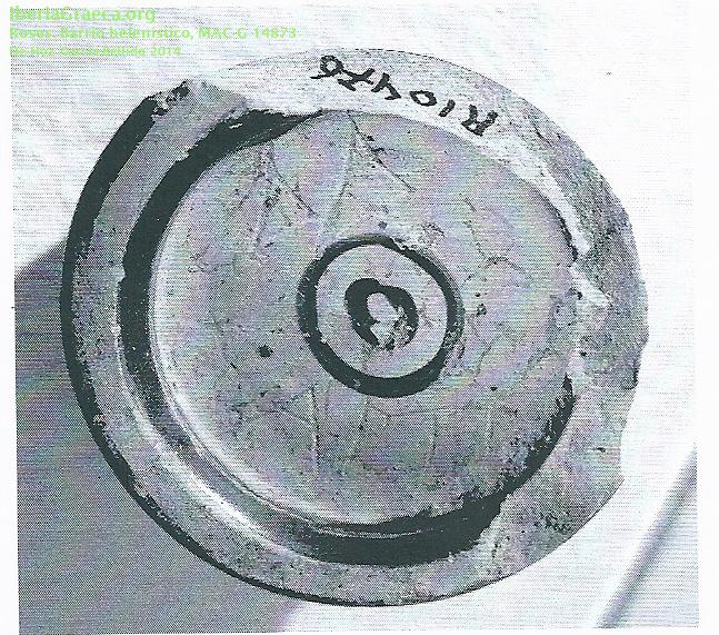 Observaciones : Según DE HOZ GARCÍA BELLIDO 2014, el primer grafito es un numeral de indicación del número de vasos de la partida (29) y el segundo abreviatura del nombre del comerciante o propietario del vaso. Autor: Pol Carreras (CIG) Supervisor: Xavier Aquilué (CIG) Fecha: 02-01-2016 |