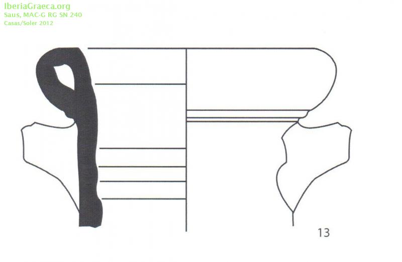 Origen : Massalia Técnica : Arcilla anaranjada Forma : Ánfora de transporte Tipo : A-MAS bd1 Parte Conservada : Borde y asa DECORACIÓN Observaciones : La clasificación tipològica ha sido realizada con la consulta en linea del estado actual del banco de datos de DICOCER (M. Py, coord.): http://www.syslat.fr/SLC/DICOCER/d.index.html Autor: Alexia Ntousaki (Universidad de Atenas) Supervisor: Xavier Aquilué (CIG) Fecha: 07-01-2016 |