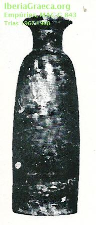 Origen : Ática Técnica : C. de barniz negro Forma : Alabastron Parte Conservada : Perfil completo DECORACIÓN